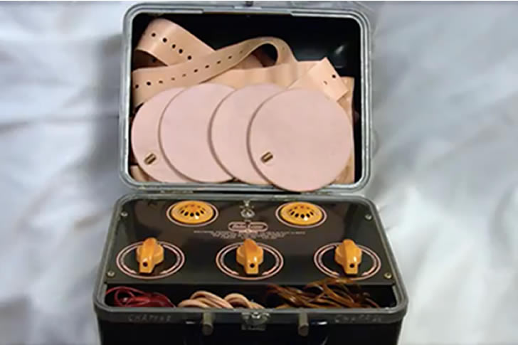 Why work out when a machine can shock your muscles into shape? That was the logic behind the Relax-a-Cizor, a 1950s contraption featuring dozens of electrodes you’d attach to your body. It sent electric pulses to “stimulate” your muscles—allegedly toning them without lifting a finger.