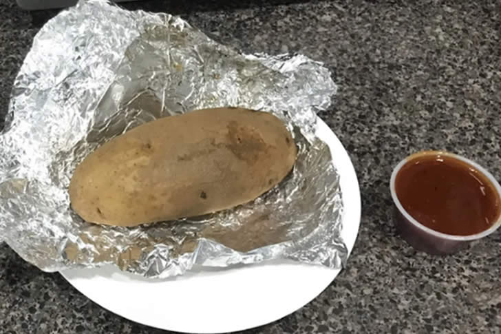38. 我老婆學校說他們為教師感謝週準備了烤肉,她很高興聽到有素食選擇!結果只是一顆淋上烤肉醬的馬鈴薯)